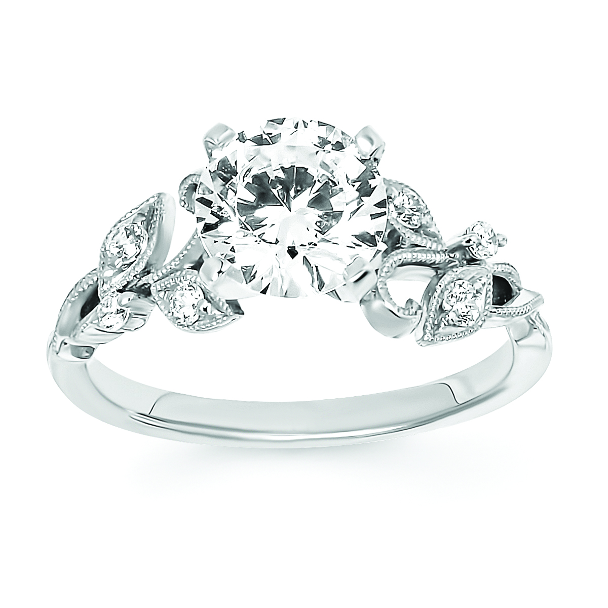 Engagement Ring Forever ElegantĀ® 1/8 Ctw. Diamond Semi Mount shown with 1 1/2 Ct. Round Center Diamond in 14K Gold