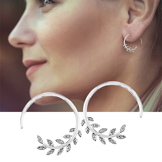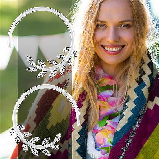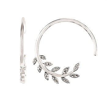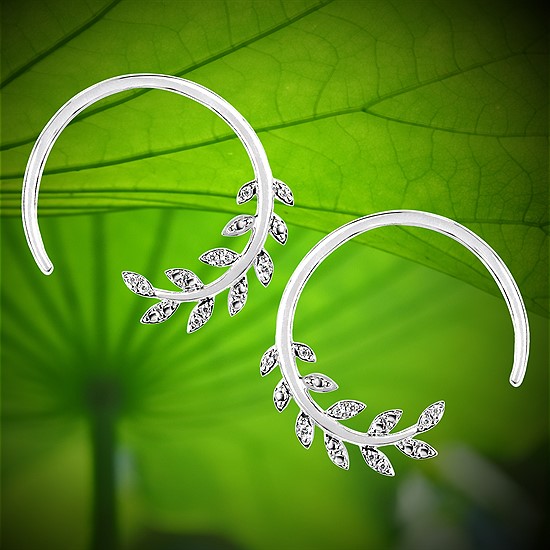 .08 Ctw. Diamond Leaf Hoop Earrings In 14K Gold