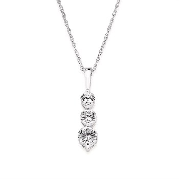 1/2 Ctw. 3 Stone Diamond Drop Pendant In 14K Gold With 18" Fine Rope Chain With 18" Chain